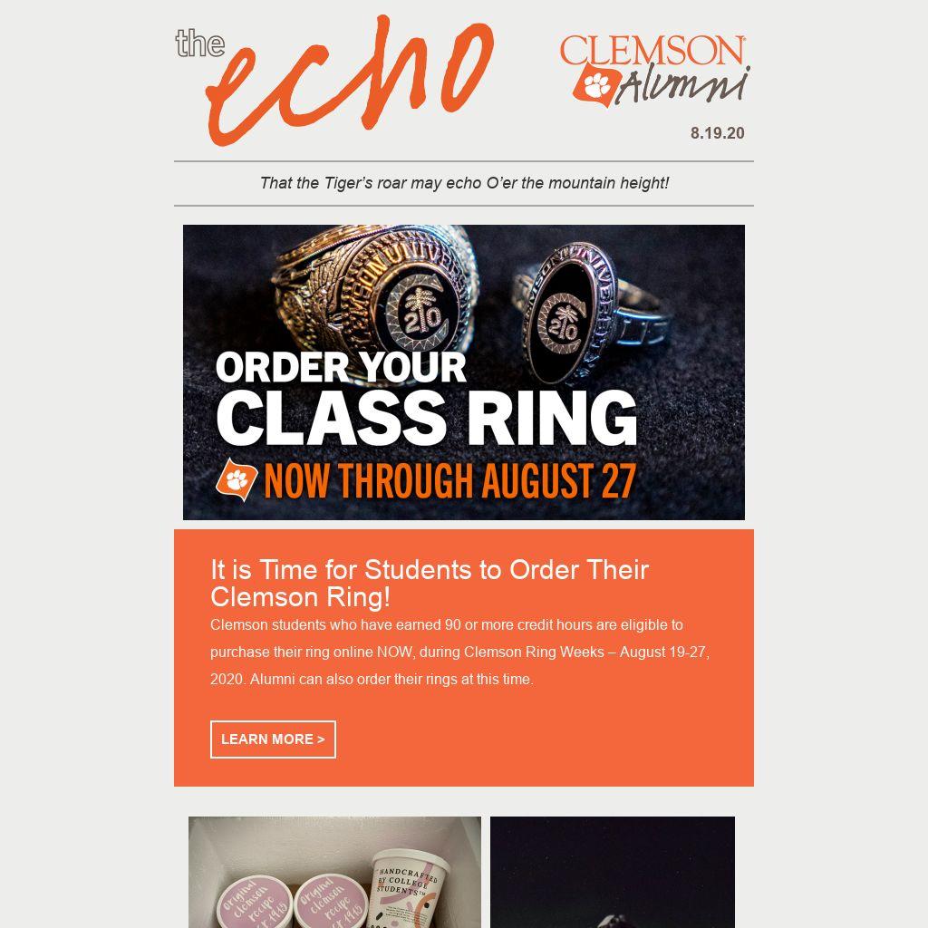 The Clemson Alumni Association will be sharing regular updates with the Clemson Family via email. Update your contact information to make sure you are receiving these updates.