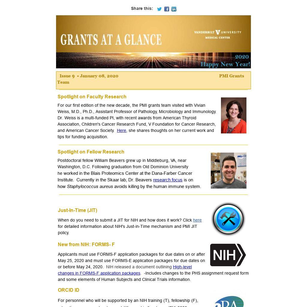 For our first edition of the new decade, the PMI grants team visited with Vivian Weiss, M.D., Ph.D., Assistant Professor of Pathology, Microbiology and Immunology. Dr. Weiss is a multi-funded PI, with recent awards from American Thyroid Association, Children's Cancer Research Fund, V Foundation for Cancer Research, and American Cancer Society. Here, she shares thoughts on her current work and tips for funding acquisition.