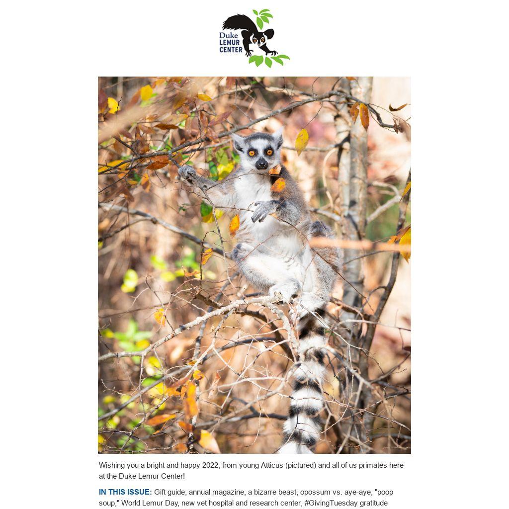 Wishing you a bright and happy 2022, from young Atticus (pictured) and all of us primates here at the Duke Lemur Center!