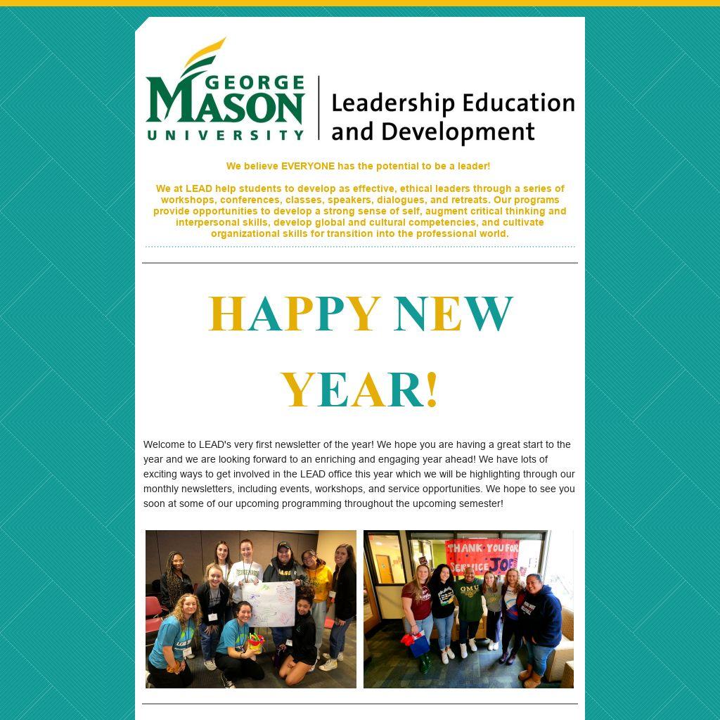 | Welcome to LEAD's very first newsletter of the year! We hope you are having a great start to the year and we are looking forward to an enriching and engaging year ahead! We have lots of exciting ways to get involved in the LEAD office this year which we will be highlighting through our monthly newsletters, including events, workshops, and service opportunities. We hope to see you soon at some of our upcoming programming throughout the upcoming semester!