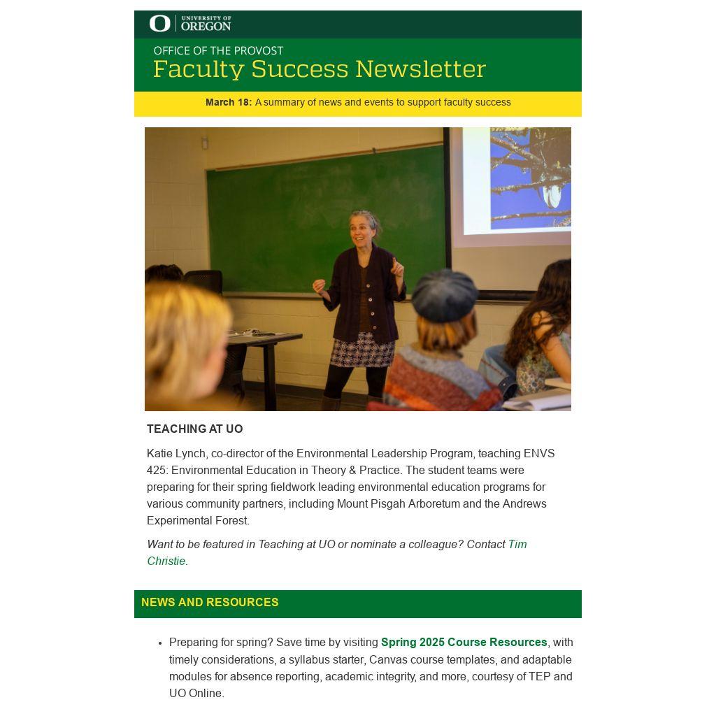 - Preparing for spring? Save time by visiting Spring 2025 Course Resources, with timely considerations, a syllabus starter, Canvas course templates, and adaptable modules for absence reporting, academic integrity, and more, courtesy of TEP and UO Online.