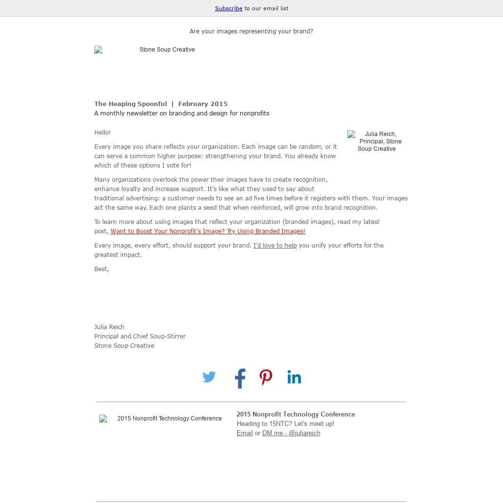 Every image you share reflects your organization. Each image can be random, or it can serve a common higher purpose: strengthening your brand. You already know which of these options I vote for!