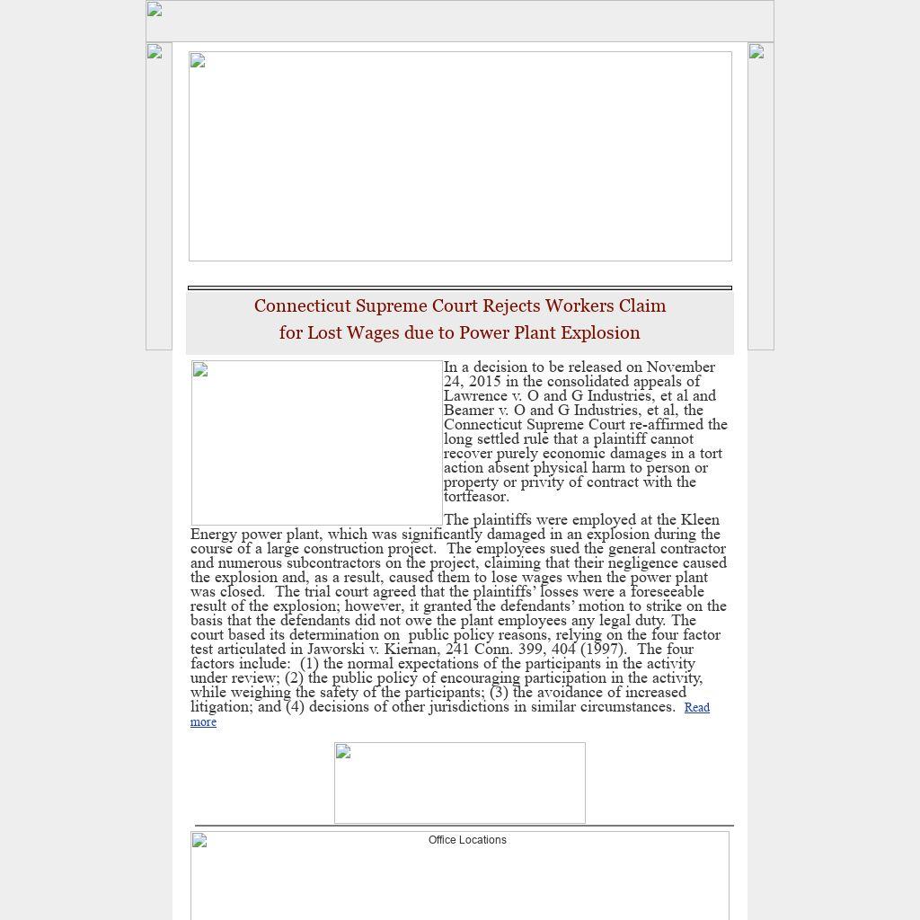 The plaintiffs were employed at the Kleen Energy power plant, which was significantly damaged in an explosion during the course of a large construction project. The employees sued the general contractor and numerous subcontractors on the project, claiming that their negligence caused the explosion and, as a result, caused them to lose wages when the power plant was closed. The trial court agreed that the plaintiffs’ losses were a foreseeable result of the explosion; however, it granted the defendants’ motion to strike on the basis that the defendants did not owe the plant employees any legal duty. The court based its determination on public policy reasons, relying on the four factor test articulated in Jaworski v. Kiernan, 241 Conn. 399, 404 (1997). The four factors include: (1) the normal expectations of the participants in the activity under review; (2) the public policy of encouraging participation in the activity, while weighing the safety of the participants; (3) the avoidance of increased litigation; and (4) decisions of other jurisdictions in similar circumstances. Read more