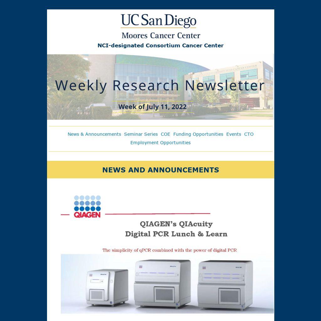 If you have newsworthy items to contribute, please contact our Marketing & Communications Manager, Renee Maude at amaude@health.ucsd.edu.