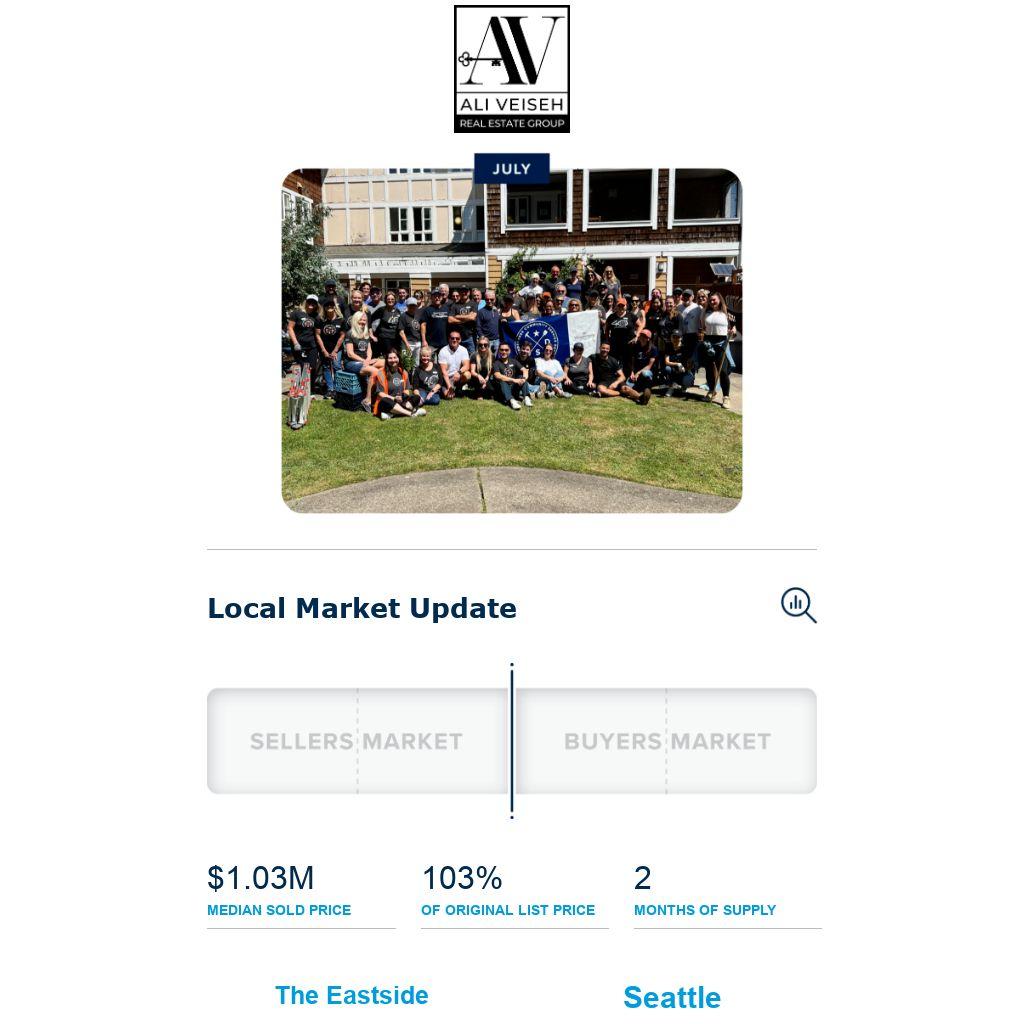 The Eastside continues to feel the weight of rising inventory. Active listings jumped 92% compared to last June, giving buyers more leverage. As a result, the median price for a single-family home dipped 2% to $1,610,000. Closed sales also slipped 2%. Notably, over half of June’s homes sold below list price or after a price reduction – an indication that negotiations are playing a bigger role. However, the condo market told a different story: prices rose 22% to $780,000, while listings increased 91%.