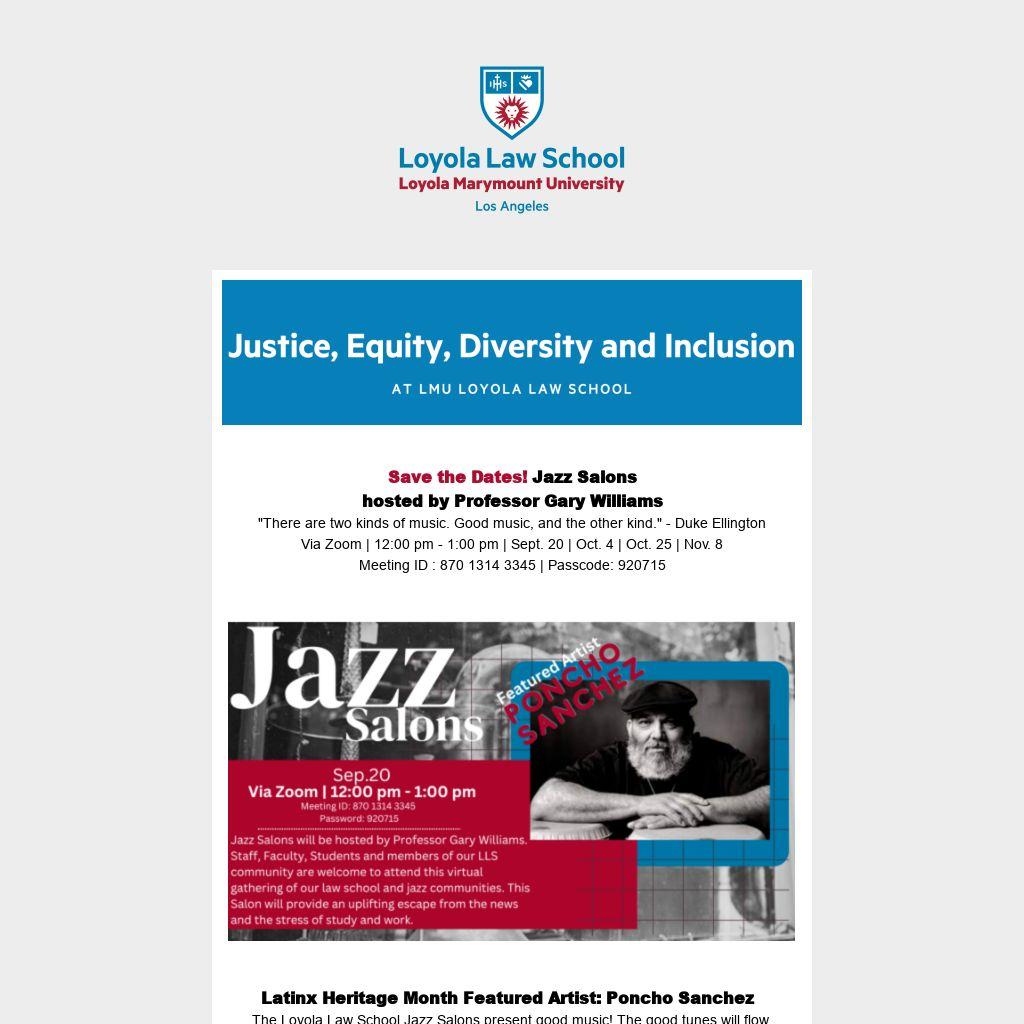 The Loyola Law School Jazz Salons present good music! The good tunes will flow next Tuesday, Sept. 20 when we present the first Jazz Salon of the fall 2022 semester.