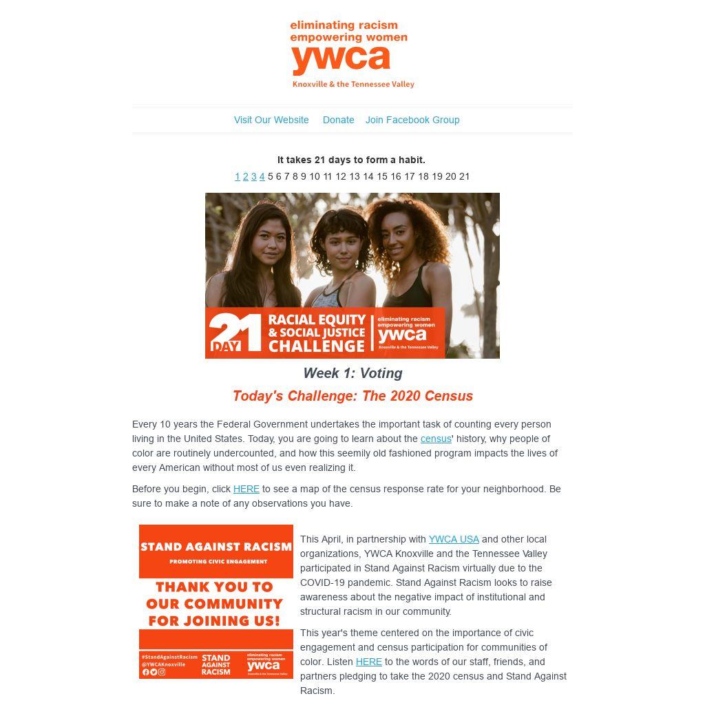 YWCA USA and other local organizations, YWCA Knoxville and the Tennessee Valley participated in Stand Against Racism virtually due to the COVID-19 pandemic. Stand Against Racism looks to raise awareness about the negative impact of institutional and structural racism in our community.