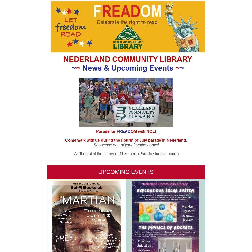 Want to keep up with Library doings? Check our website often, follow us on Facebook, or just stop by... we'd love to see you, and you can check out NASA's otherworldly Discover Exoplanets exhibit.