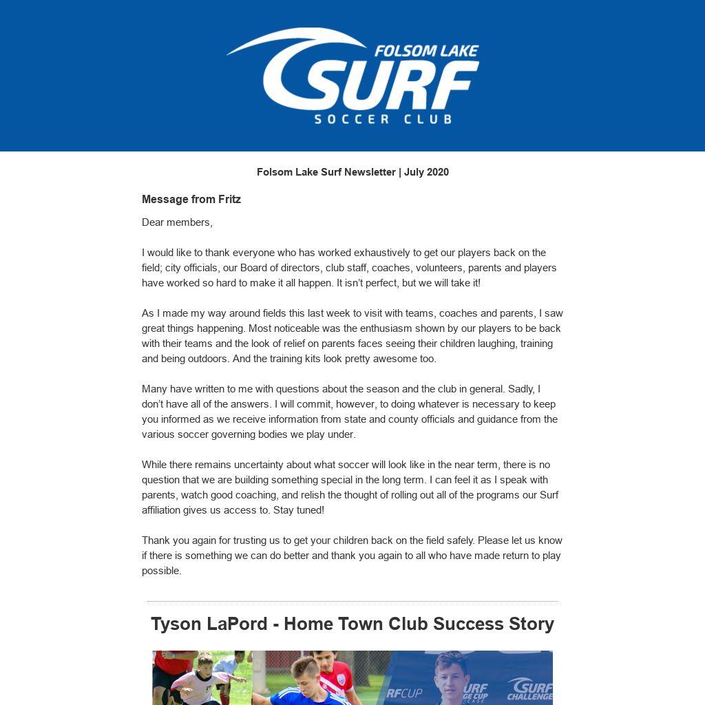 While there remains uncertainty about what soccer will look like in the near term, there is no question that we are building something special in the long term. I can feel it as I speak with parents, watch good coaching, and relish the thought of rolling out all of the programs our Surf affiliation gives us access to. Stay tuned!