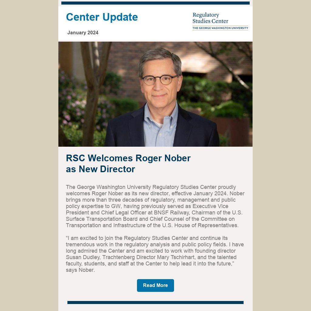 The George Washington University Regulatory Studies Center proudly welcomes Roger Nober as its new director, effective January 2024. Nober brings more than three decades of regulatory, management and public policy expertise to GW, having previously served as Executive Vice President and Chief Legal Officer at BNSF Railway, Chairman of the U.S. Surface Transportation Board and Chief Counsel of the Committee on Transportation and Infrastructure of the U.S. House of Representatives.