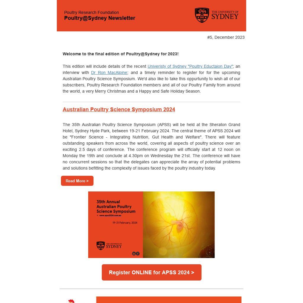 Welcome to the final edition of Poultry@Sydney for 2023!
