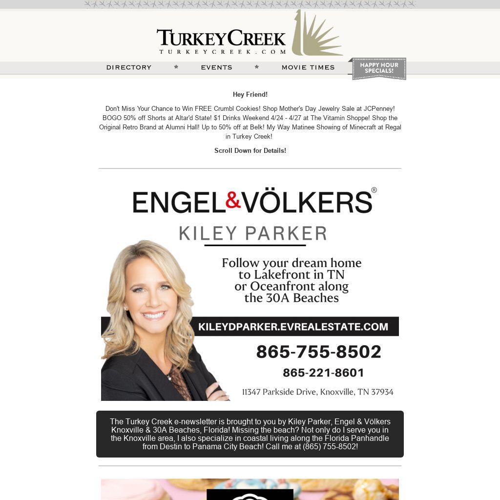 Don't Miss Your Chance to Win FREE Crumbl Cookies! Shop Mother's Day Jewelry Sale at JCPenney! BOGO 50% off Shorts at Altar'd State! $1 Drinks Weekend 4/24 - 4/27 at The Vitamin Shoppe! Shop the Original Retro Brand at Alumni Hall! Up to 50% off at Belk! My Way Matinee Showing of Minecraft at Regal in Turkey Creek!