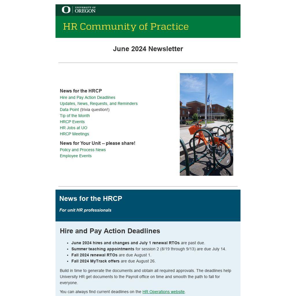HR website upgrade: The HR website will undergo a technical upgrade on or about June 27. You'll notice some look-and-feel differences, but the content and pages will remain the same for now. We don't anticipate the upgrade to cause problems, but if you notice broken links, missing files, or other weirdness, please email hrcommunications@uoregon.edu.