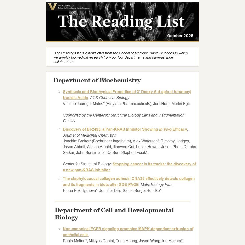 The Reading List is a newsletter from the School of Medicine Basic Sciences in which we amplify biomedical research from our four departments and campus-wide collaborators.