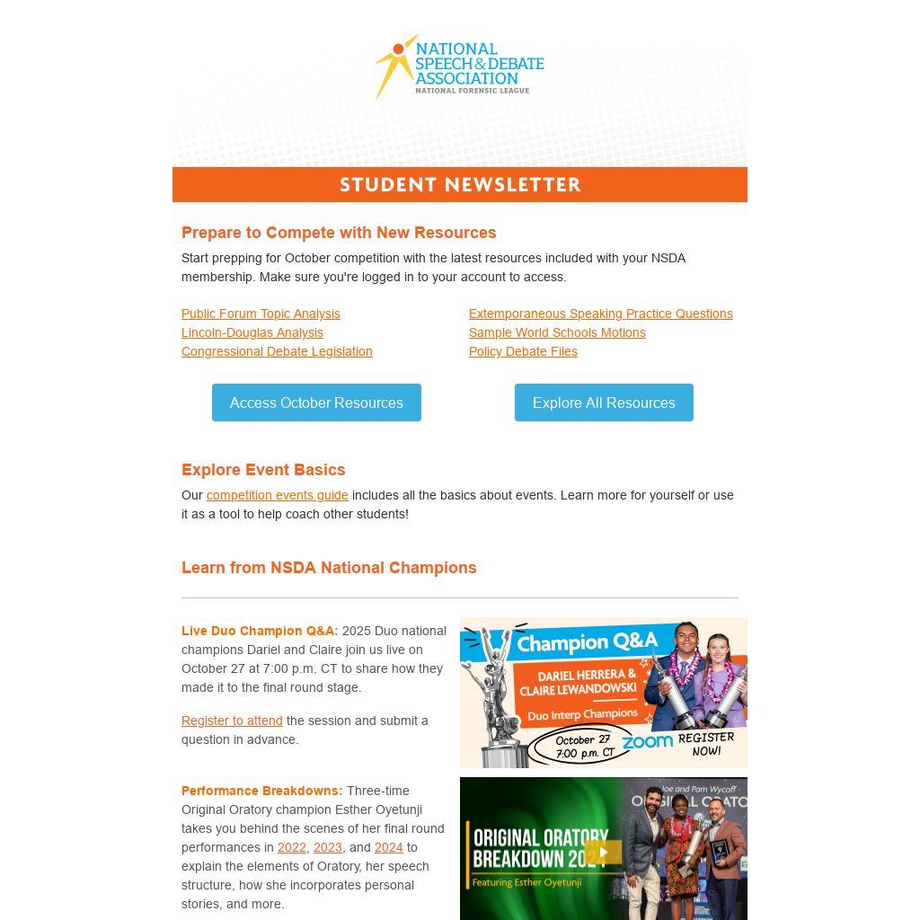 NSDA Student Newsletter — October 2025