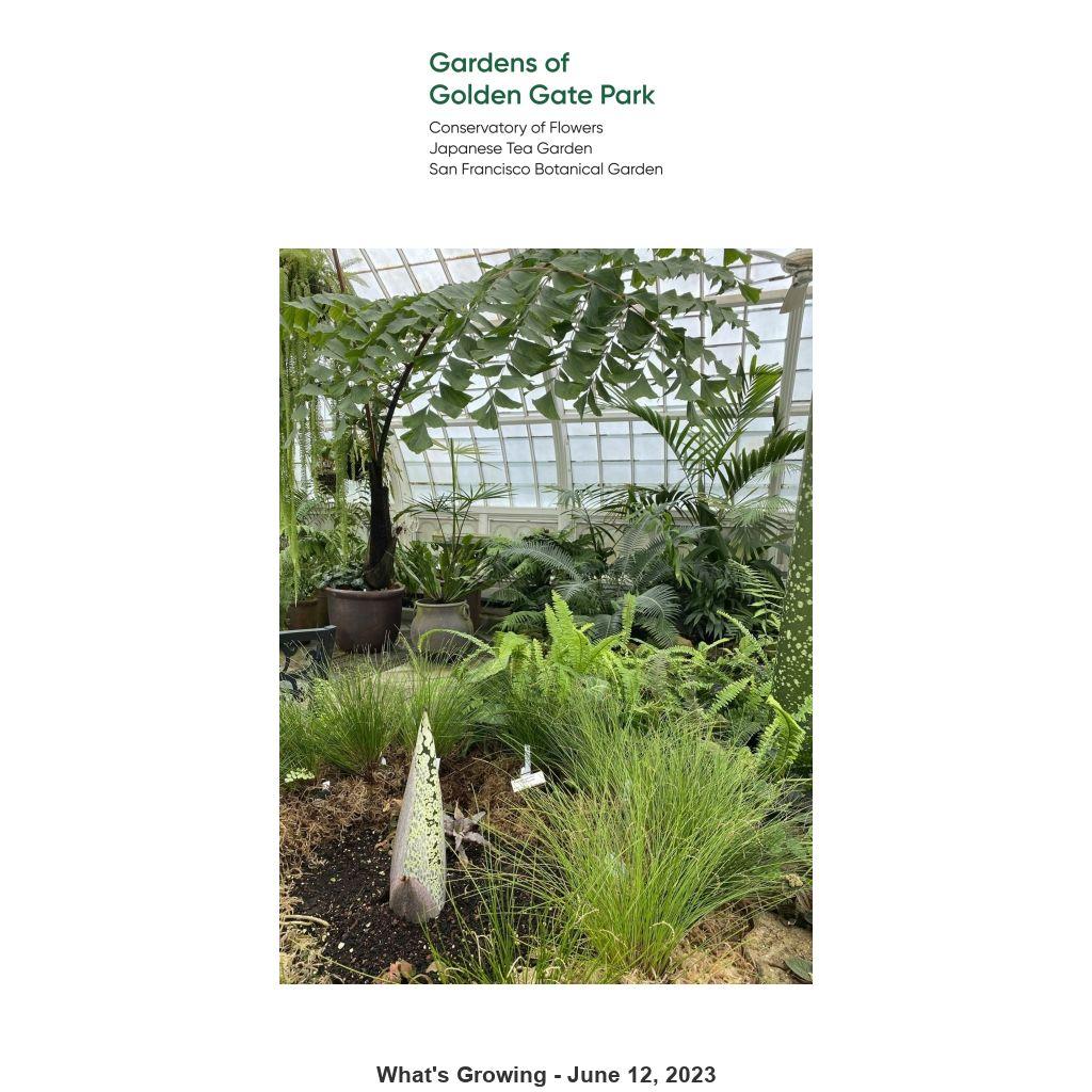 Another important update at the Conservatory is that beginning on July 1, the Conservatory of Flowers will shift its weekly maintenance closure day from Mondays to Wednesdays. This change has now been reflected on our public site and volunteer registration. We hope to see you at the Gardens soon!