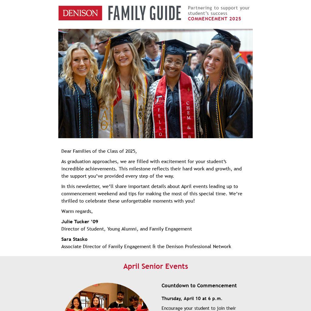 In this newsletter, we’ll share important details about April events leading up to commencement weekend and tips for making the most of this special time. We’re thrilled to celebrate these unforgettable moments with you!