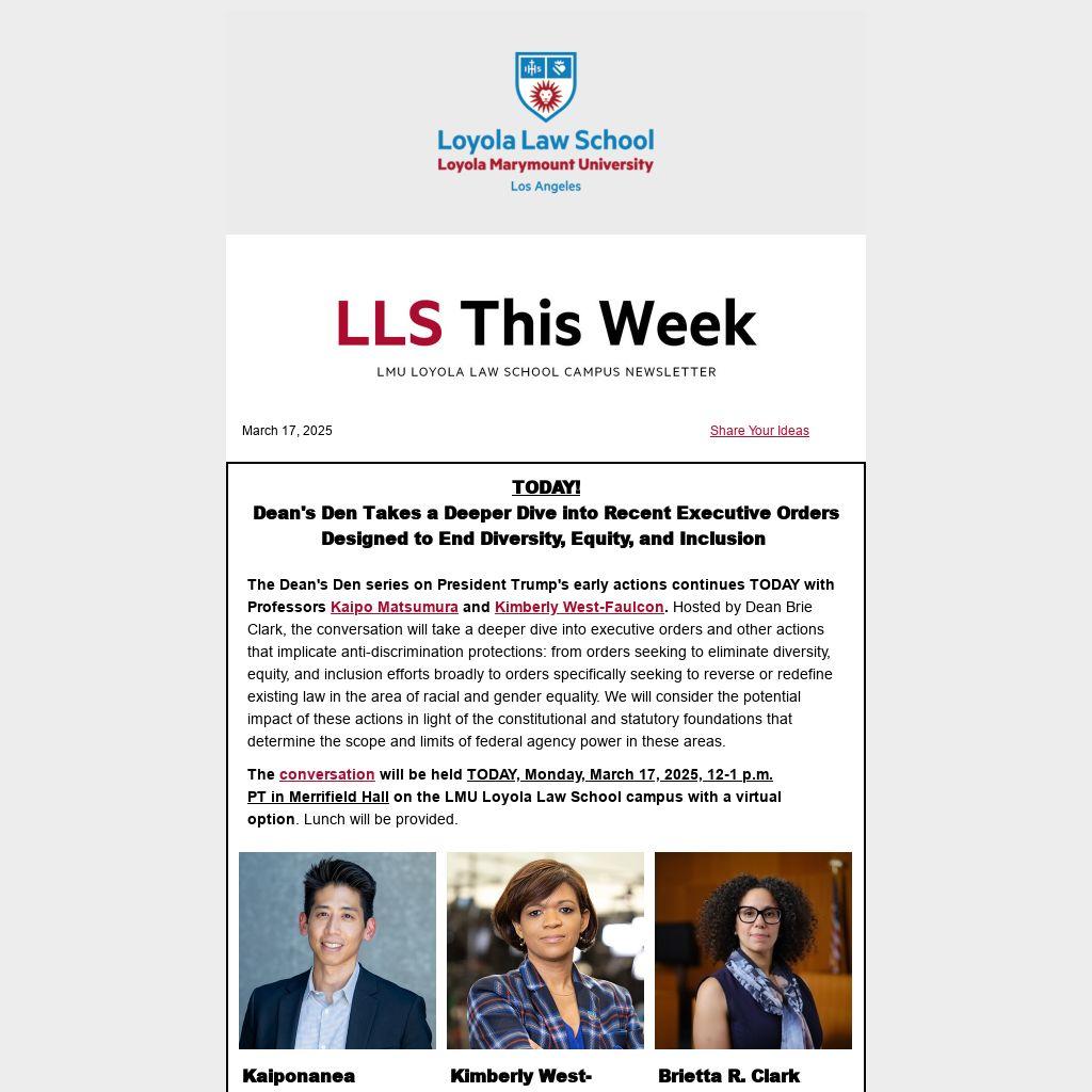 The LLS Entertainment and Media Law Institute (EMLI) and LMU School of Film and Television are joining forces once again to host "Call My People," a behind-the-scenes look at how creative professionals and their agents build successful relationships with studio lawyers and business affairs. The event is Friday, March 21 from 4-6 p.m. at the LMU Playa Vista campus. A networking reception will follow the discussion.