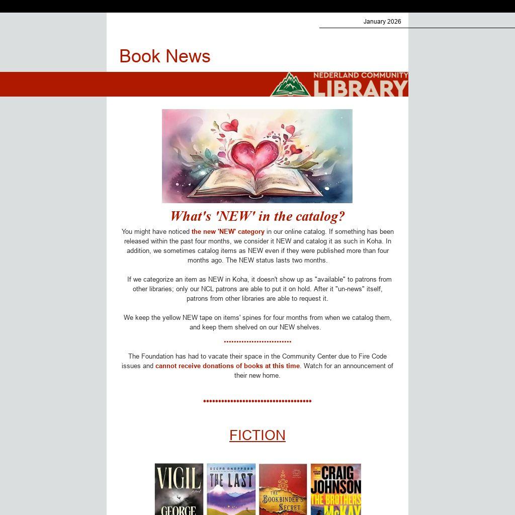 What's 'NEW' in the catalog?You might have noticed the new 'NEW' category in our online catalog. If something has been released within the past four months, we consider it NEW and catalog it as such in Koha. In addition, we sometimes catalog items as NEW even if they were published more than four months ago. The NEW status lasts two months.