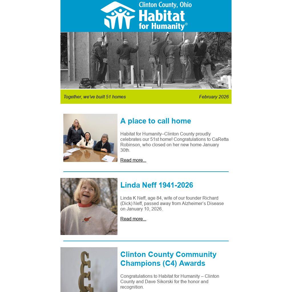 Congratulations to Habitat for Humanity – Clinton County and Dave Sikorski for the honor and recognition.