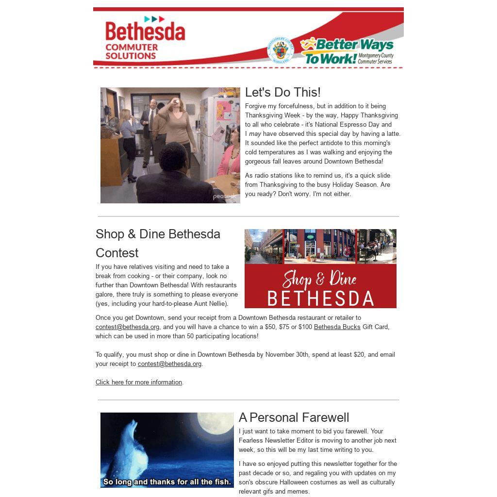 Forgive my forcefulness, but in addition to it being Thanksgiving Week - by the way, Happy Thanksgiving to all who celebrate - it's National Espresso Day and I may have observed this special day by having a latte. It sounded like the perfect antidote to this morning's cold temperatures as I was walking and enjoying the gorgeous fall leaves around Downtown Bethesda!