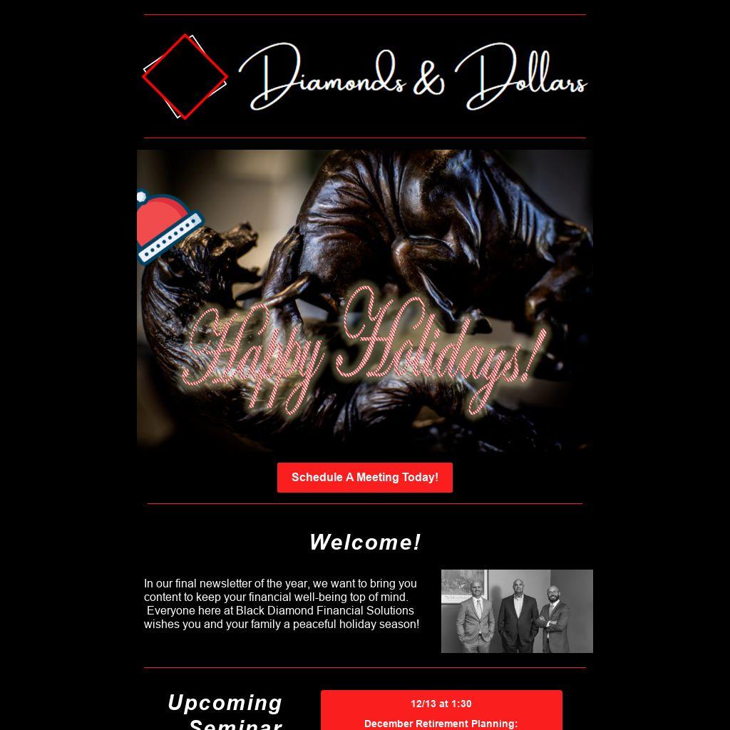 In our final newsletter of the year, we want to bring you content to keep your financial well-being top of mind. Everyone here at Black Diamond Financial Solutions wishes you and your family a peaceful holiday season!
