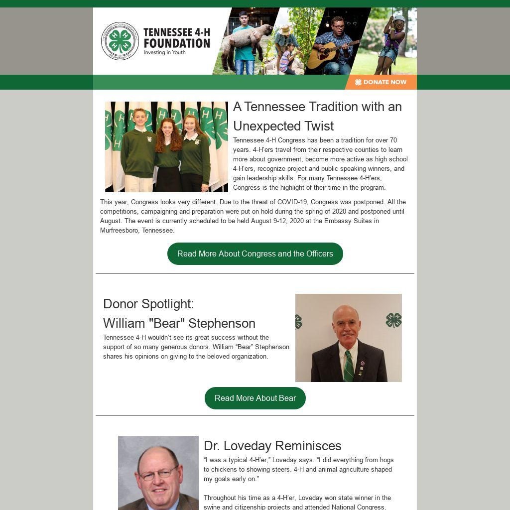 Tennessee 4-H Congress has been a tradition for over 70 years. 4-H’ers travel from their respective counties to learn more about government, become more active as high school 4-H’ers, recognize project and public speaking winners, and gain leadership skills. For many Tennessee 4-H’ers, Congress is the highlight of their time in the program.