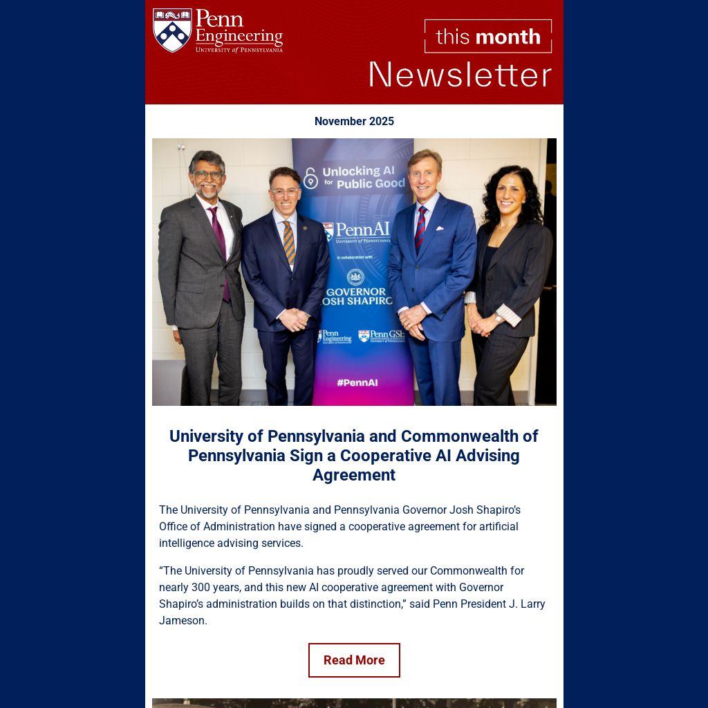 University of Pennsylvania and Commonwealth of Pennsylvania Sign a Cooperative AI Advising Agreement |