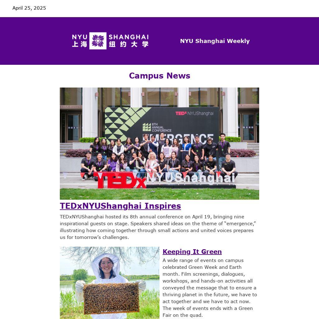 • On April 18, NYU Shanghai’s