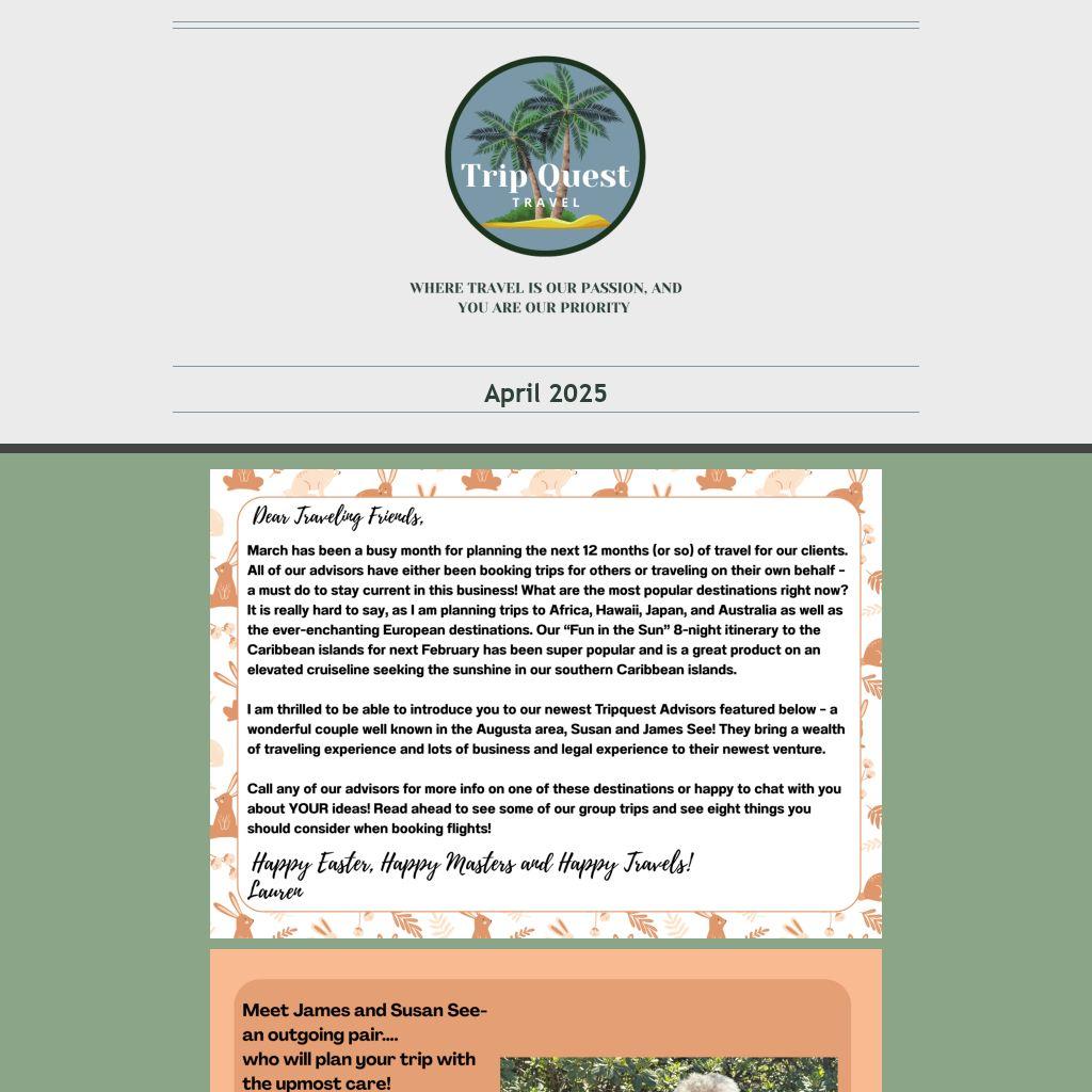 I am Lauren Williams, owner of Trip Quest Travel Services for the past ten years. Moving from three decades in education to becoming a travel consultant has caused me to shift from “The Doctor of Education” to “The Doctor of Travel.” My clients are often just like me – they want a rejuvenating vacation that teaches them about the world and the cultures around them. I love beautiful scenery, exploring new places, and learning something new every day! Aside from travel, I stay busy with my husband, Steve, who has joined me in the travel business, and our four children and thirteen grandchildren. Being active in the church and in our community feeds our souls as well. I love to play pickleball and bridge when I am not helping clients plan that perfect trip! Because our world is so much smaller now, I am happy to work with clients wherever they might live…but by referral only. Let me know if you have friends or family who would like to be added to my monthly newsletter list! Also, let me know if there is something you’d like to know more about!