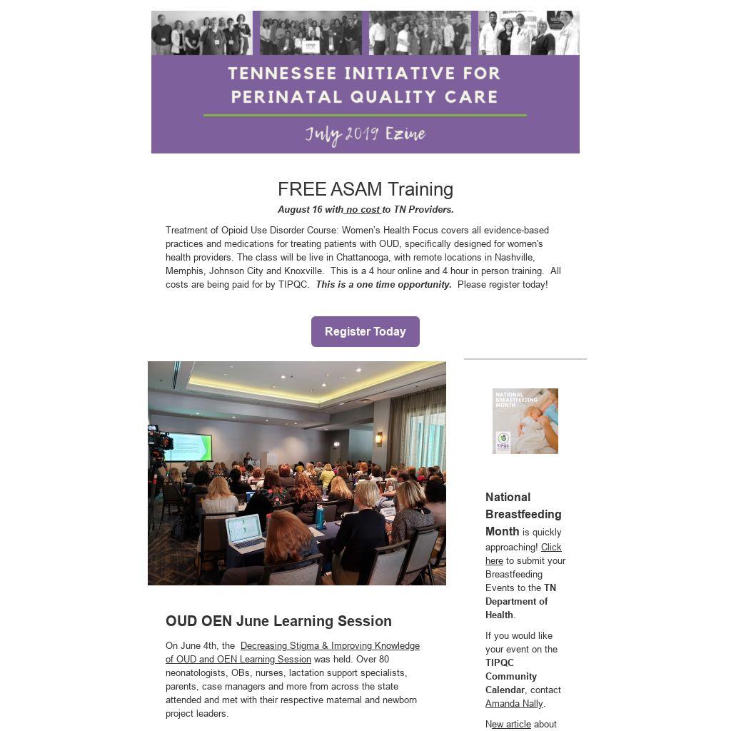 Treatment of Opioid Use Disorder Course: Women’s Health Focus covers all evidence-based practices and medications for treating patients with OUD, specifically designed for women's health providers. The class will be live in Chattanooga, with remote locations in Nashville, Memphis, Johnson City and Knoxville. This is a 4 hour online and 4 hour in person training. All costs are being paid for by TIPQC. This is a one time opportunity. Please register today!