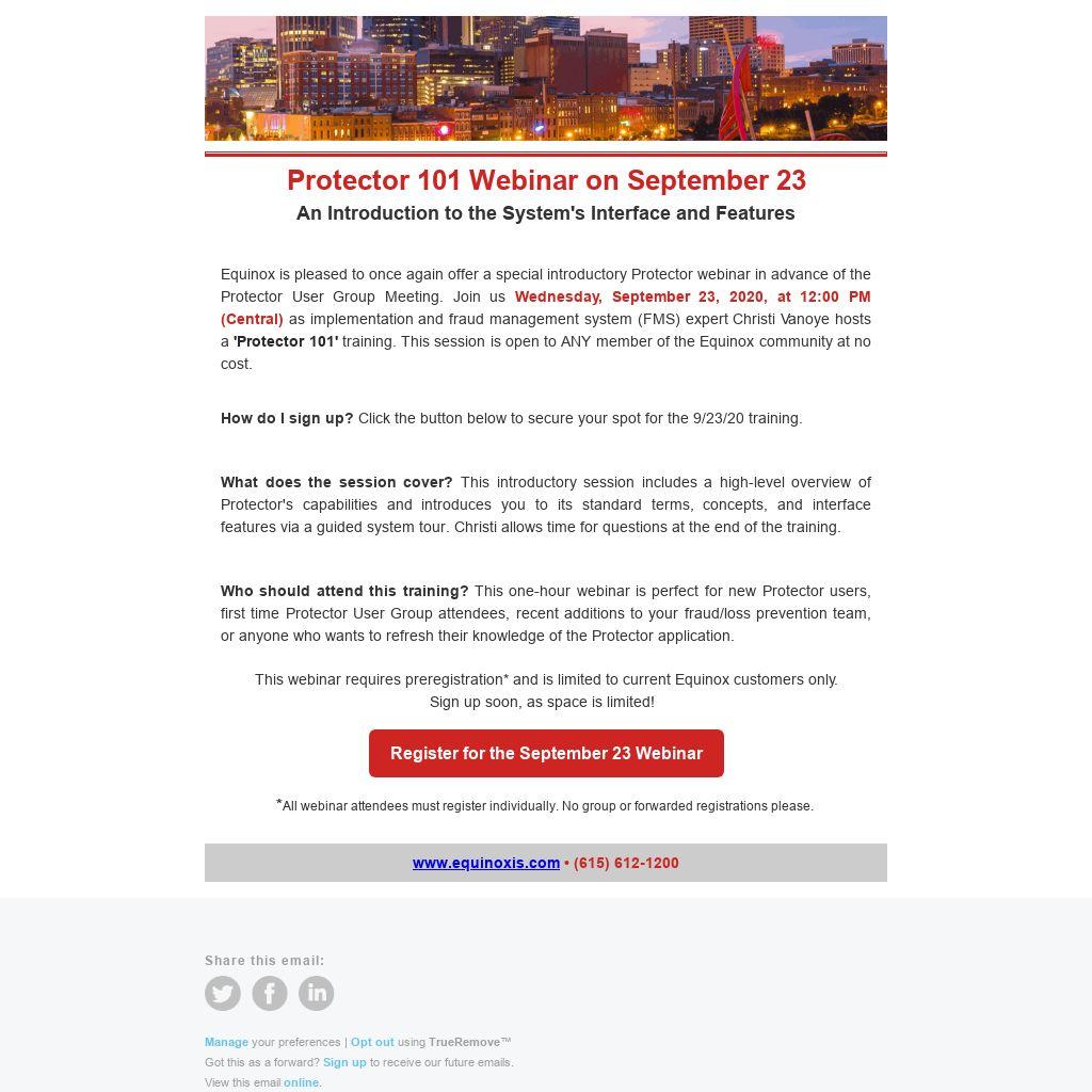 Who should attend this training? This one-hour webinar is perfect for new Protector users, first time Protector User Group attendees, recent additions to your fraud/loss prevention team, or anyone who wants to refresh their knowledge of the Protector application.