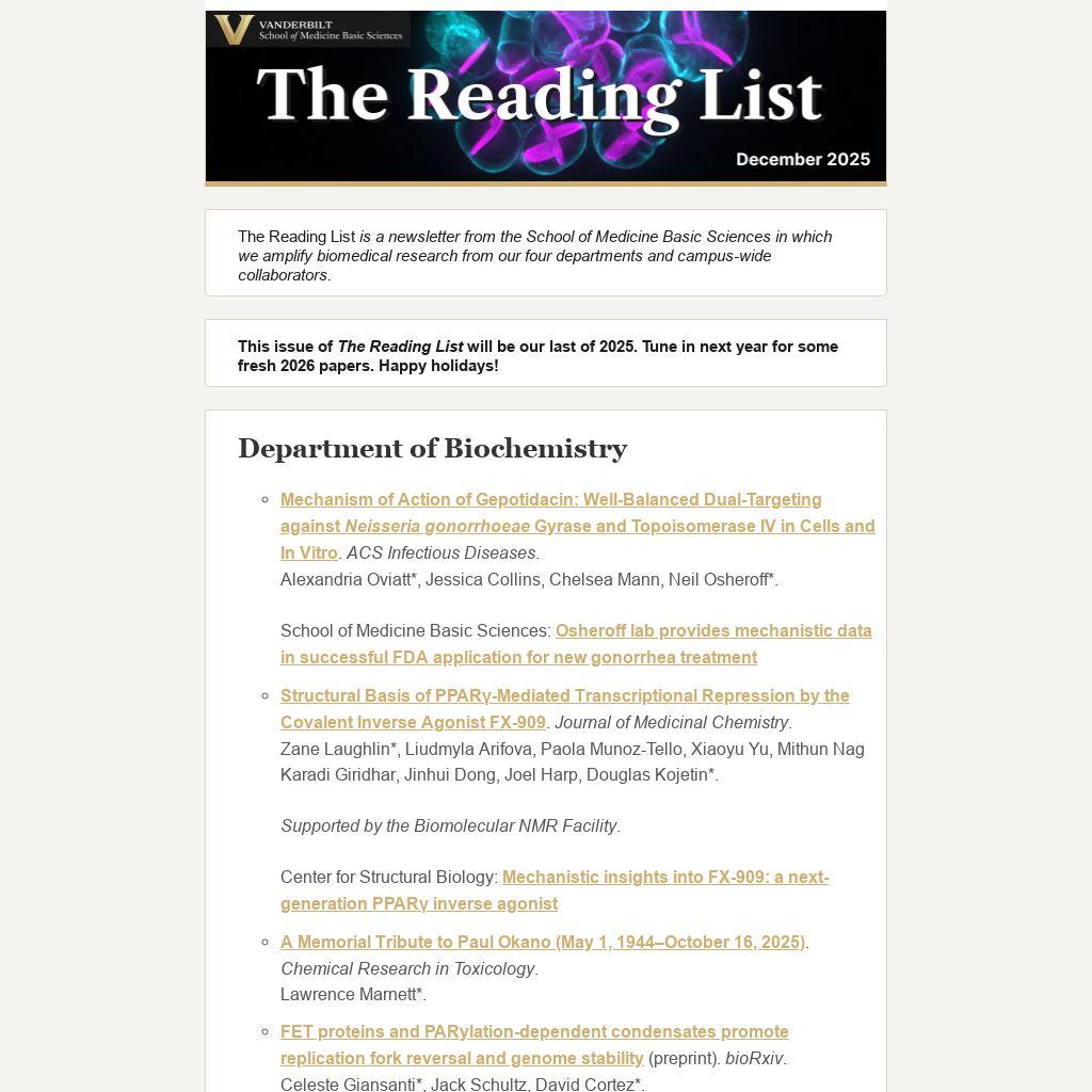The Reading List is a newsletter from the School of Medicine Basic Sciences in which we amplify biomedical research from our four departments and campus-wide collaborators.