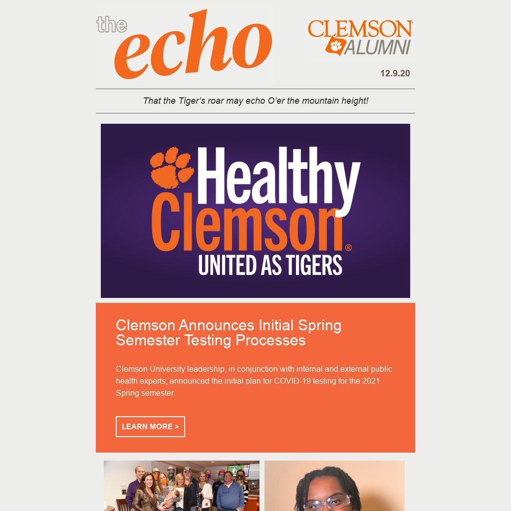 The Clemson Alumni Association will be sharing regular updates with the Clemson Family via email. Update your contact information to make sure you are receiving these updates.