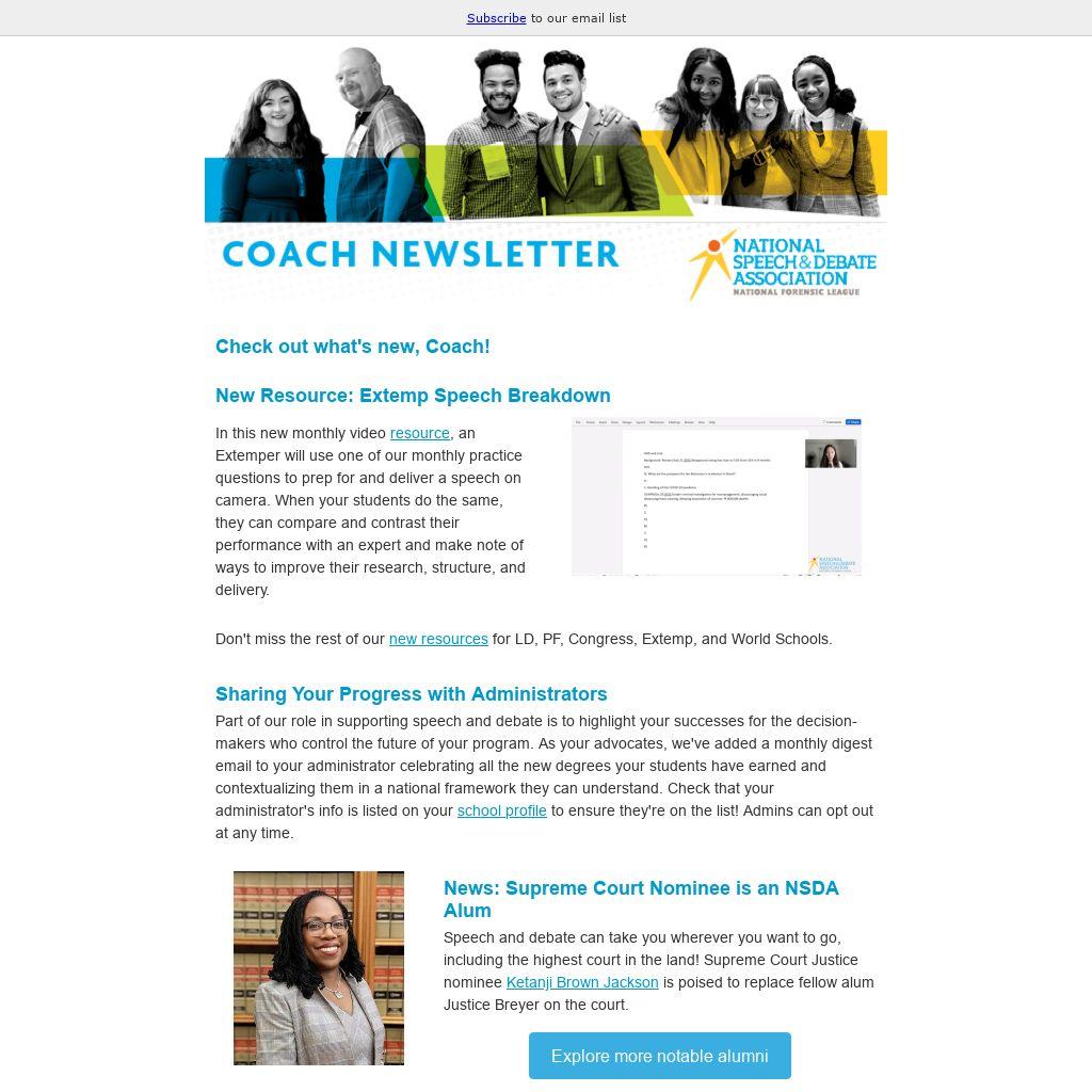 Part of our role in supporting speech and debate is to highlight your successes for the decision-makers who control the future of your program. As your advocates, we've added a monthly digest email to your administrator celebrating all the new degrees your students have earned and contextualizing them in a national framework they can understand. Check that your administrator's info is listed on your school profile to ensure they're on the list! Admins can opt out at any time.