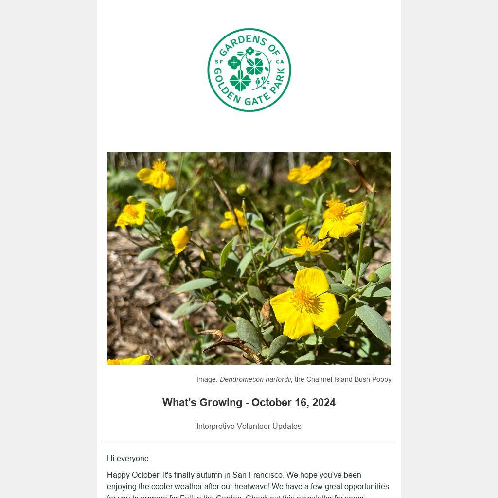 Happy October! It's finally autumn in San Francisco. We hope you've been enjoying the cooler weather after our heatwave! We have a few great opportunities for you to prepare for Fall in the Garden. Check out this newsletter for some updates and enrichments that you can join.