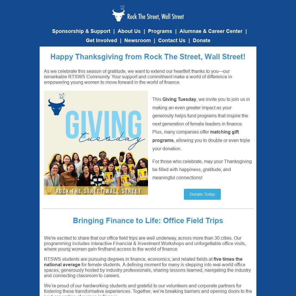 As we celebrate this season of gratitude, we want to extend our heartfelt thanks to you—our remarkable RTSWS Community. Your support and commitment make a world of difference in empowering young women to move forward in the world of finance.