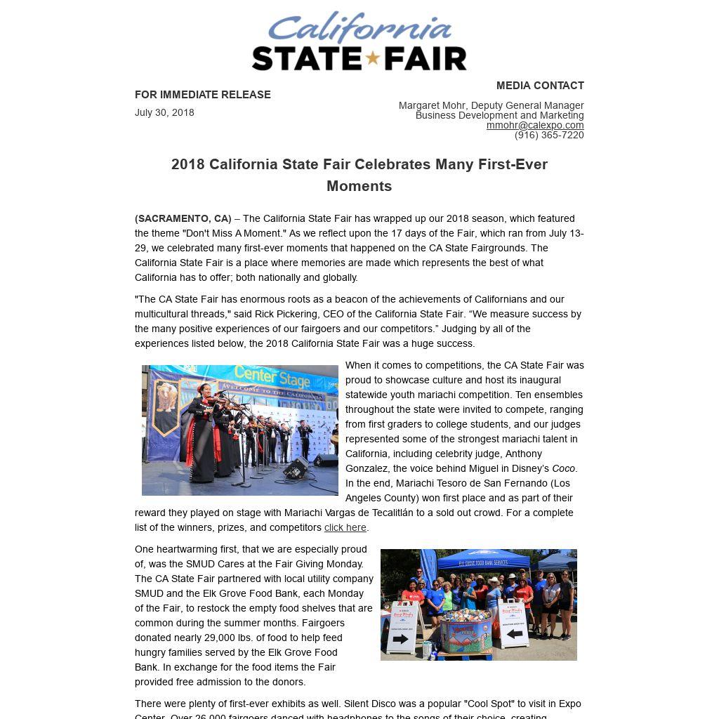 | 2018 California State Fair Celebrates Many First-Ever Moments