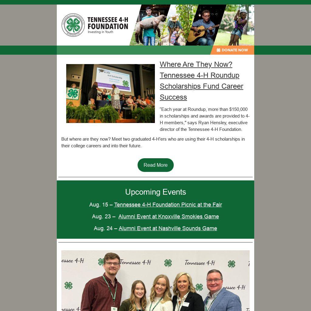 Tennessee 4-H is beyond blessed with generous donors and sponsors. Folks from all over the state and from so many diverse organizations give their time, talents and gifts to better the future of our country through Tennessee 4-H’ers.