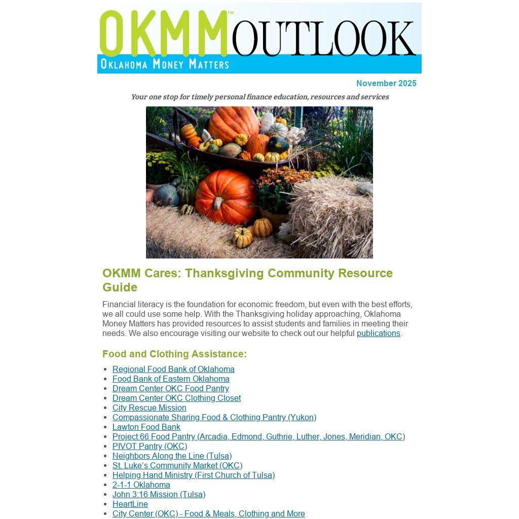Check out the November edition of Financial Friday, Oklahoma Money Matters' online personal finance newsletter. This month's edition of Financial Friday will help you on the journey to being debt-free, so that you can focus on family — and of course, TURKEY!
