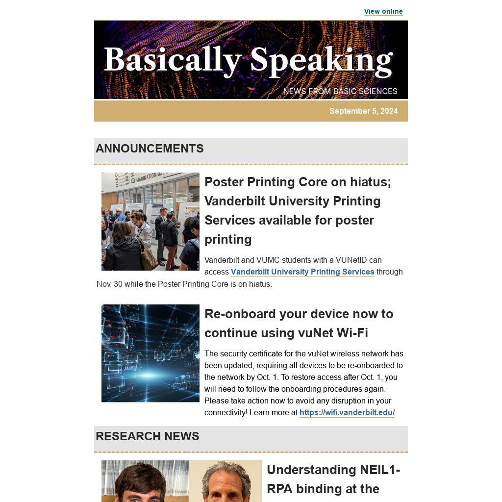 The security certificate for the vuNet wireless network has been updated, requiring all devices to be re-onboarded to the network by Oct. 1. To restore access after Oct. 1, you will need to follow the onboarding procedures again. Please take action now to avoid any disruption in your connectivity! Learn more at https://wifi.vanderbilt.edu/.