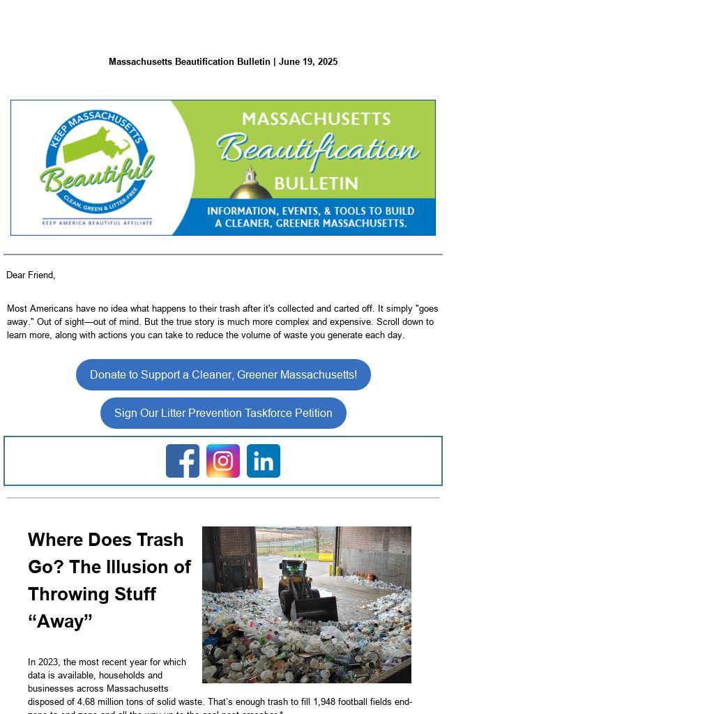 In 2023, the most recent year for which data is available, households and businesses across Massachusetts disposed of 4.68 million tons of solid waste. That’s enough trash to fill 1,948 football fields end-zone-to-end-zone and all the way up to the goal-post crossbar.*