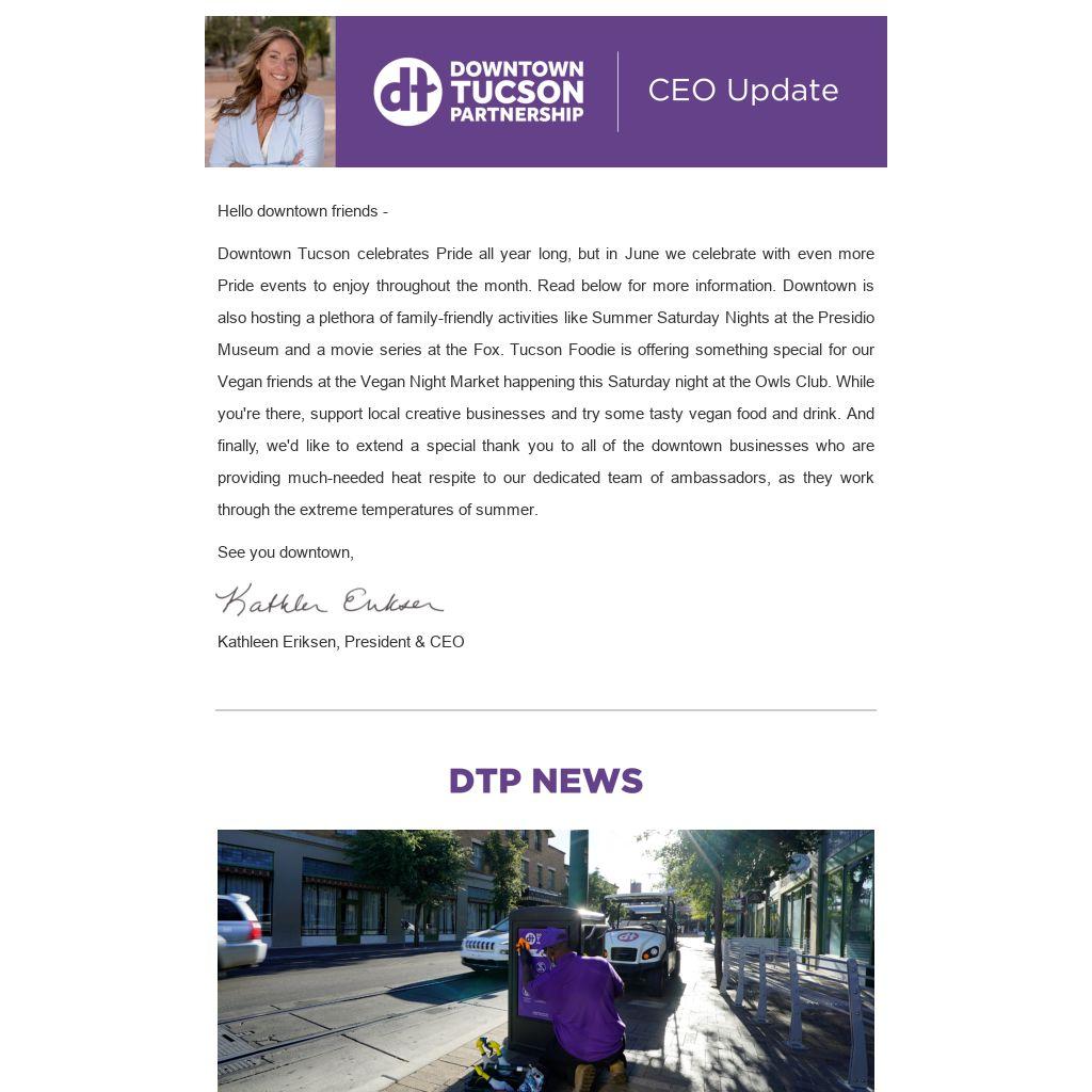 The DTP has a combined total of 130,000 social media followers, 6,900 email subscribers and 11,000 monthly website visits. Businesses that are looking to be featured on our social media can email Jenny Knight, Marketing Specialist at DTP. To be featured in our Weekend Report email blast, businesses should submit their promotions and happenings to the Downtown Events Calendar in advance. Downtown businesses also receive a free webpage on downtowntucson.org. Learn more about DTP's marketing, communications and promotions by clicking here.