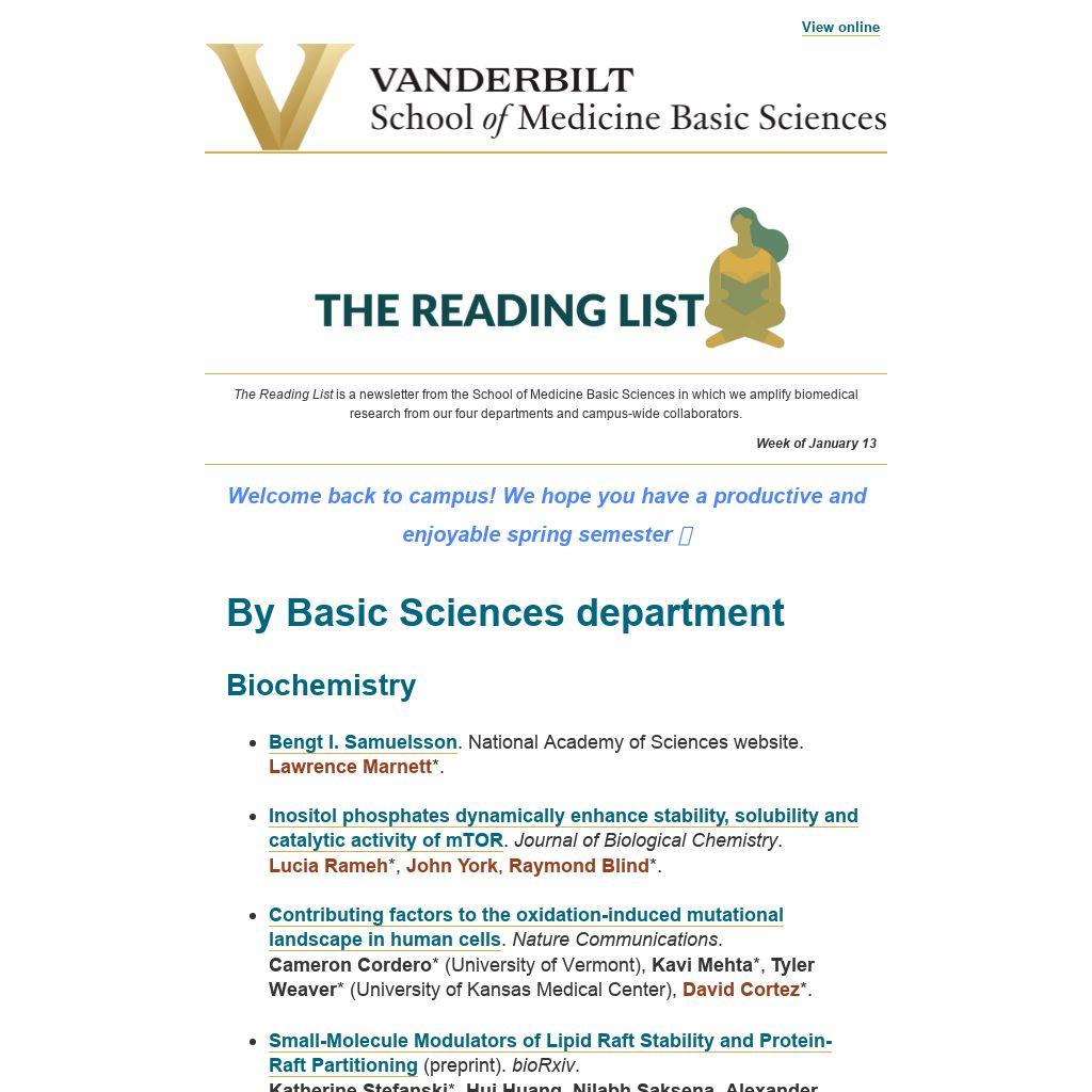 The Reading List is a newsletter from the School of Medicine Basic Sciences in which we amplify biomedical research from our four departments and campus-wide collaborators.