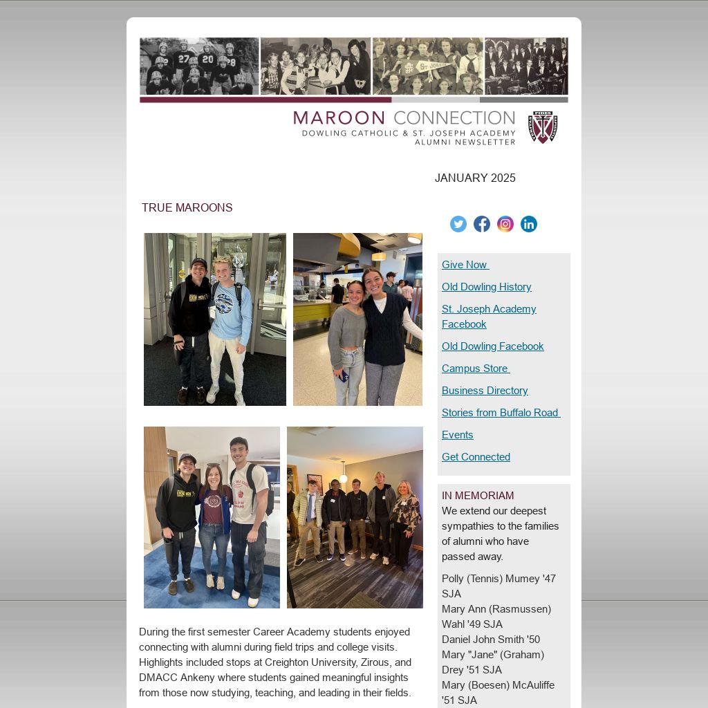 THE MAROON FUND We invite alumni, families and friends to support the Maroon Fund, Dowling Catholic's Annual Appeal. Your gift strengthens every aspect of the student experience by supporting three essential pillars: Academic Excellence, Student & Faith Life, and School Services.