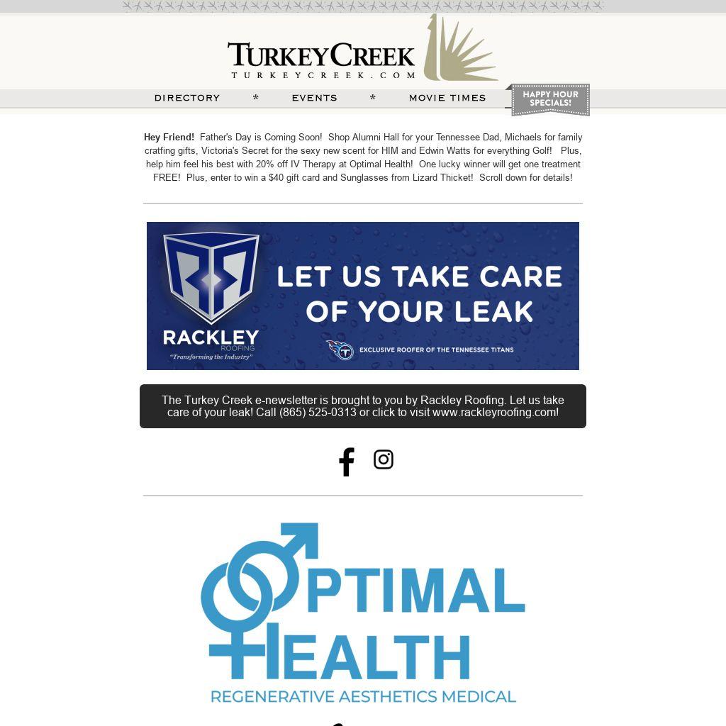 Hey Friend! Father's Day is Coming Soon! Shop Alumni Hall for your Tennessee Dad, Michaels for family cratfing gifts, Victoria's Secret for the sexy new scent for HIM and Edwin Watts for everything Golf! Plus, help him feel his best with 20% off IV Therapy at Optimal Health! One lucky winner will get one treatment FREE! Plus, enter to win a $40 gift card and Sunglasses from Lizard Thicket! Scroll down for details!