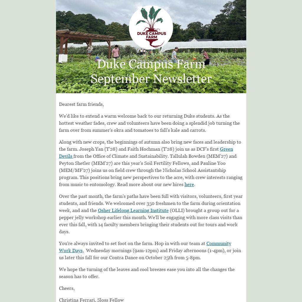 Stay in touch with the Duke Campus Farm by following us on socials.