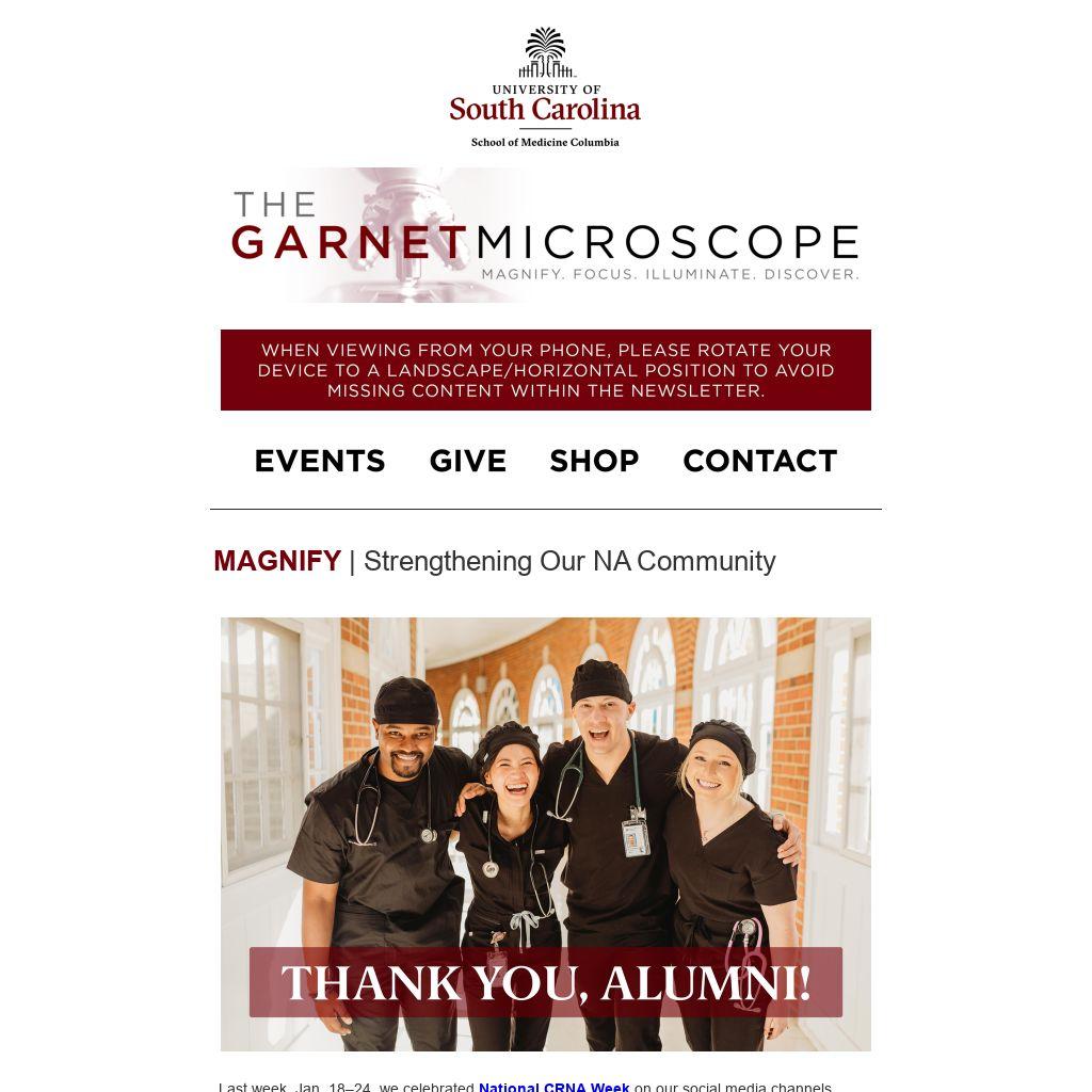 We also celebrated a meaningful milestone with the inaugural NA Scrub Cap Campaign. Thanks to the generosity of 53 alumni donors, the effort reached full funding within days, raising $2,925 to provide scrub caps for every student in the Nurse Anesthesia program. Supported by a proud network of nearly 740 nurse anesthetist alumni, including 58 DNAP graduates, this new tradition strengthens the connection between alumni and students and offers a visible reminder of the community standing behind them.