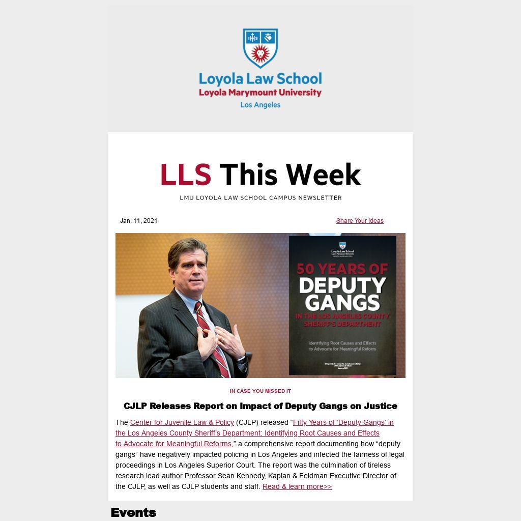 Welcome back to the Spring 2021 Semester! Event coordinators are encouraged to use the LLS Events Calendar for events they want promoted broadly. All LLS events should be posted to the LLS Master Calendar, which has been updated to reflect the law school's virtual event and meeting spaces. Questions? Email us!