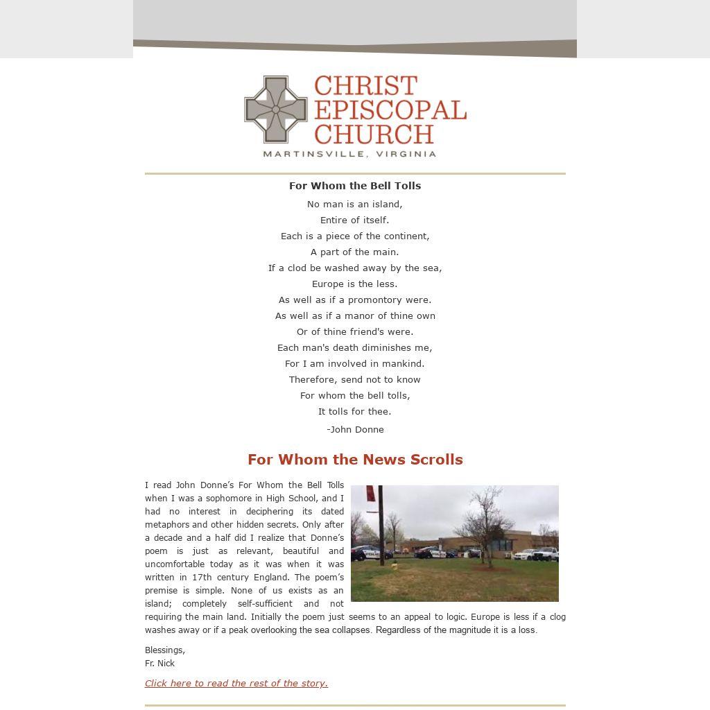 Feed your soul in the beauty of silence and candlelight and music. Take on the Lenten discipline of Wednesday evening Evensong, and be fulfilled.